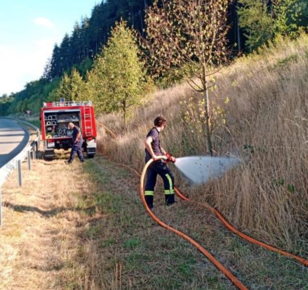 Zum Erhalt junger Bäume während der aktuellen Trocken- und Hitzeperiode wurde die Feuerwehr Abt. Bad Rotenfels angefragt, um besonders betroffene Bäume gezielt zu wässern.